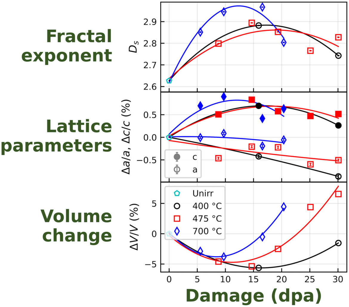 David J. Sprouster et al, Linking Lattice Strain and Fractal Dimensions to Non‐monotonic Volume Changes in Irradiated Nuclear Graphite, Interdisciplinary Materials (2025). DOI: 10.1002/idm2.70008