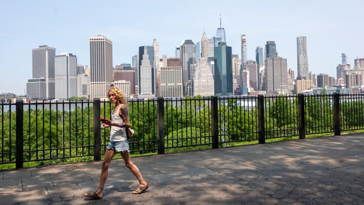 People enjoy an unusually warm day in New York City as temperatures reach the low 80s on June 4, 2025 in New York City.