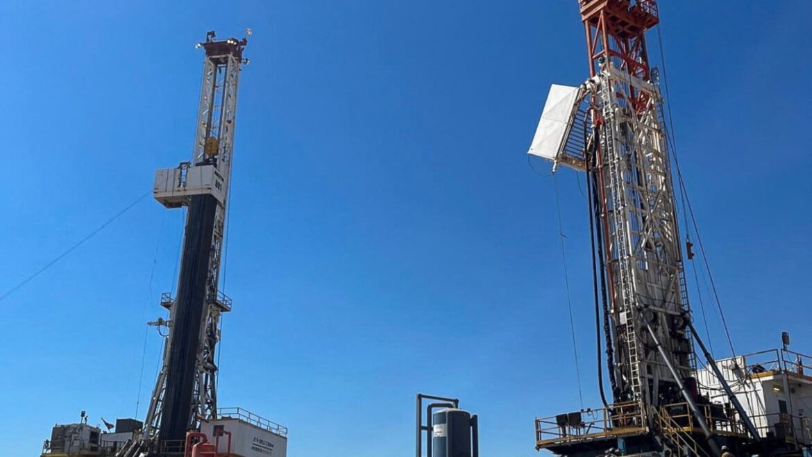 Two drilling rigs are pictured in Midland, Texas, U.S., Oct. 8, 2024.
